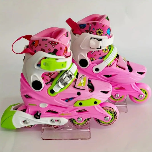 4 Wheels Adjustable Inline Skates Skating Shoes for Boys Kids Girls Skating Shoe Adjustable Roller Blades Age 6 to 15 Years PU Strong Wheels Aluminium with LED Flash Light on Wheels (Pink)