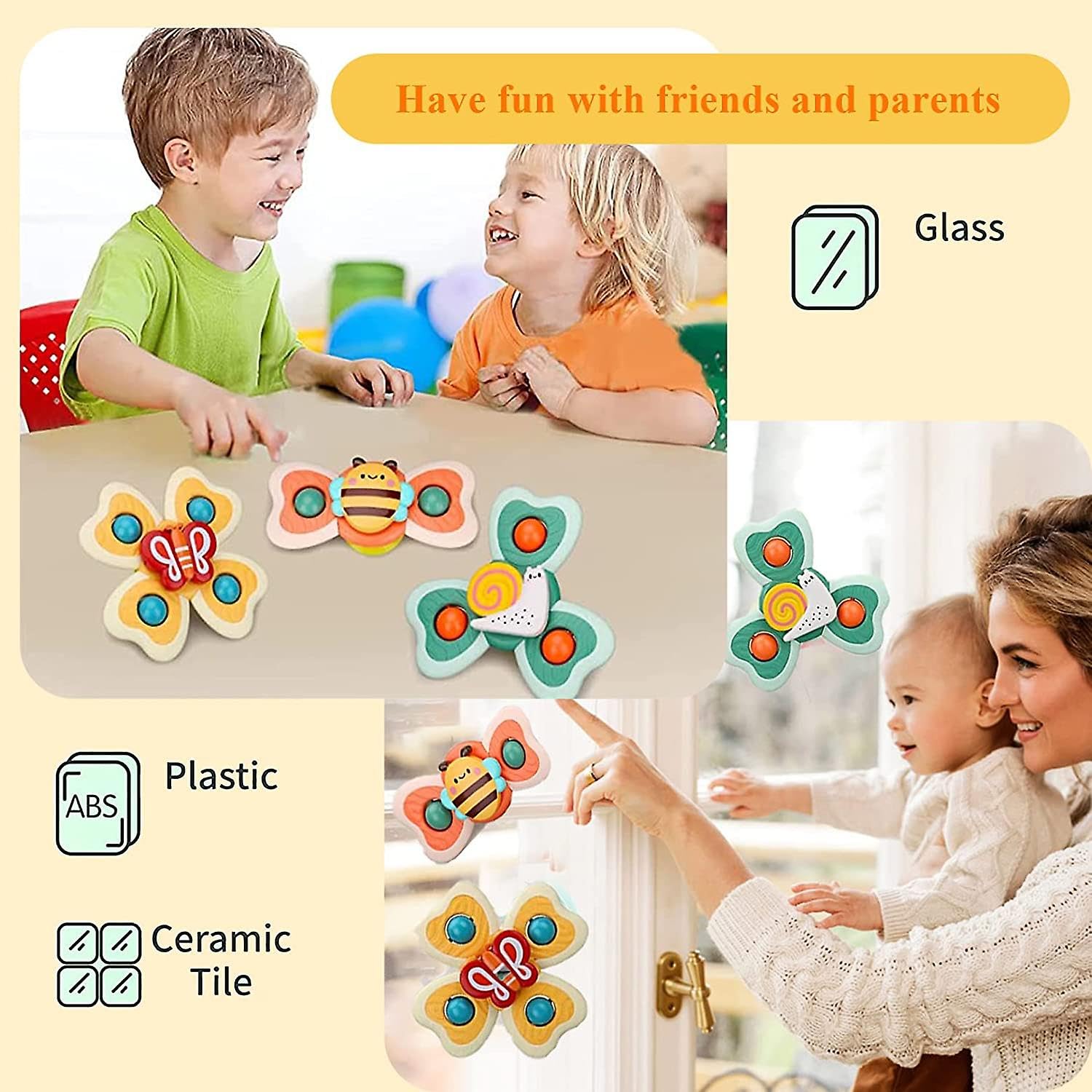 - [Exciting Bathtub Games]: Make bath time more enjoyable with our suction cup spinner toys, designed for kids and babies who love water fun in the bathtub or swimming pool.