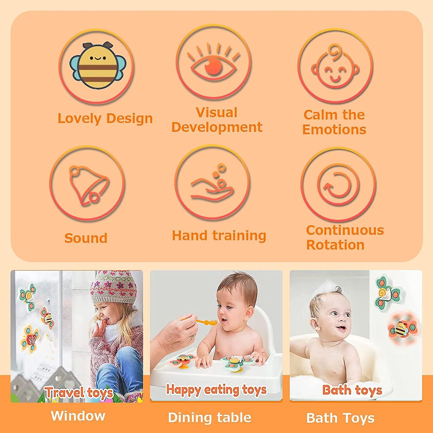 - [Exciting Bathtub Games]: Make bath time more enjoyable with our suction cup spinner toys, designed for kids and babies who love water fun in the bathtub or swimming pool.
