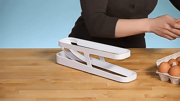 - Roll Eggs Down: Gravity-fed design makes the Egg Dispenser practical. A track that is sloped releases eggs at a time. The eggs will immediately roll out of the outlet when you remove the eggs from it.