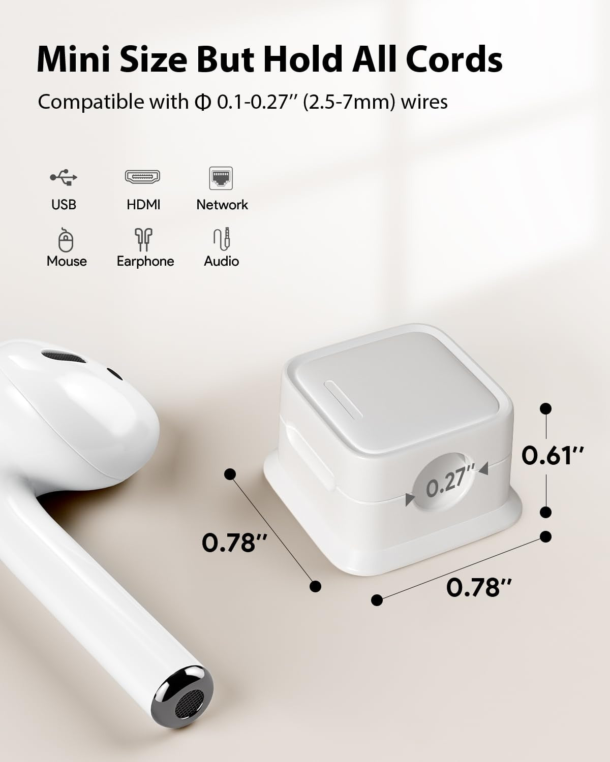- Keeping All Cords Organized : Diameter of about 0.3in allows to hold most cords, such as Phone Charging Cords,Type-C charging cords, lightning cords, HDMI cords, USB cables, computer power wires, network wires, mouse cords, keyboard cables, headphone cords. [Warm Tips] After sticking the cord holders, please WAIT for 30 minutes before using for better adhering effect