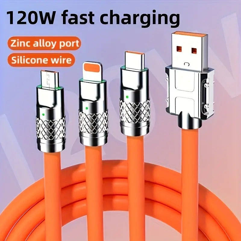 3 in 1 USB 120W Fast Charging Cable Apple,Android &Type-C(1.2M,Orange)
