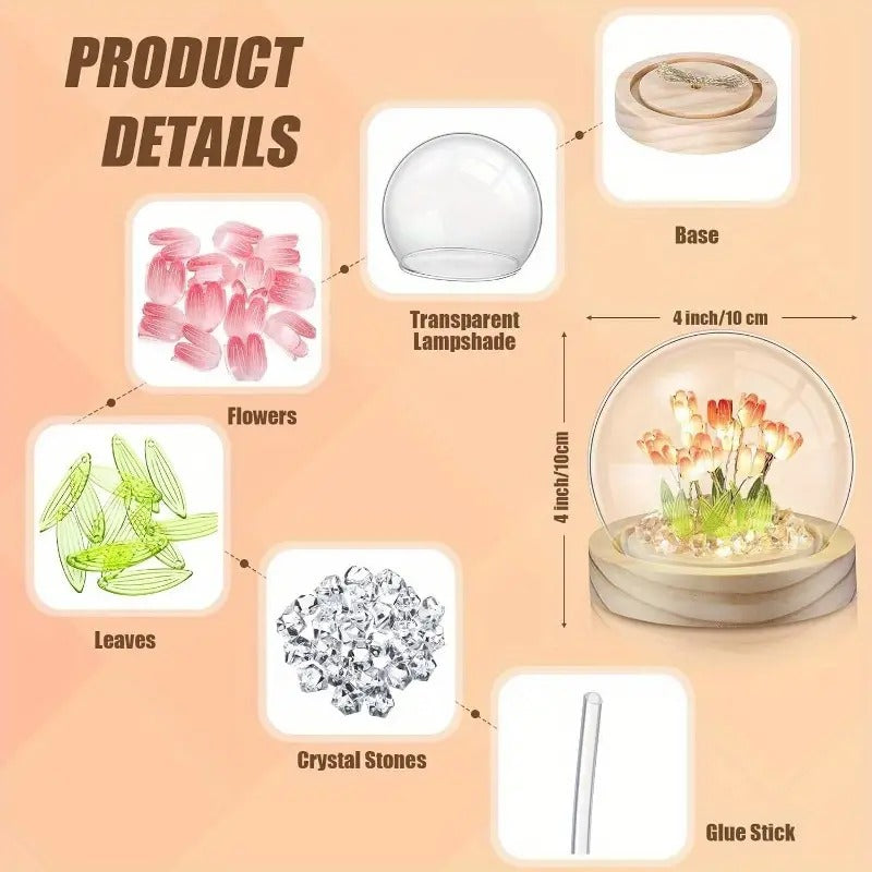 - Elegant Design: Crafted with a natural wooden base and 9 delicate tulip flowers, this LED lamp exudes romance and sophistication, perfect for home decor.