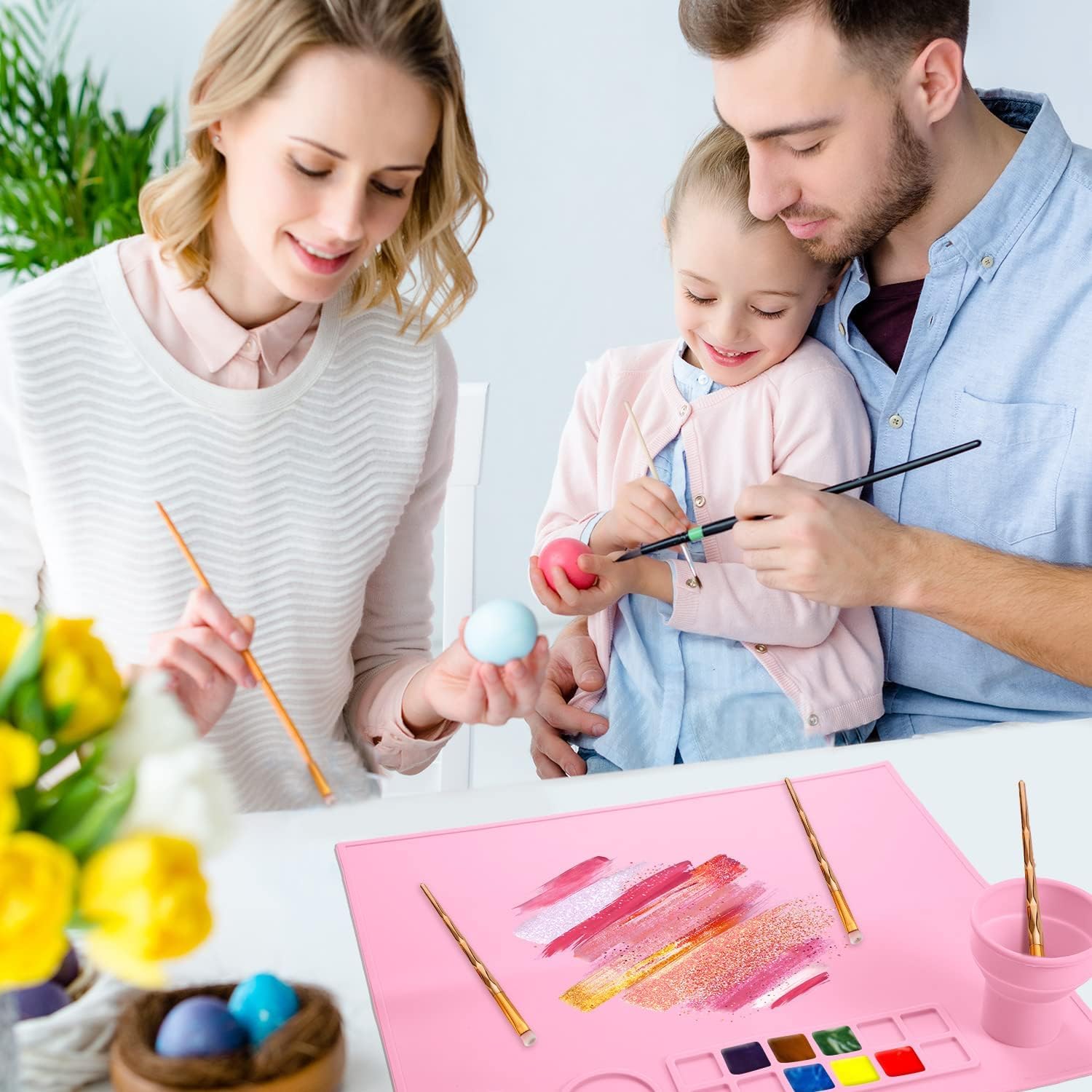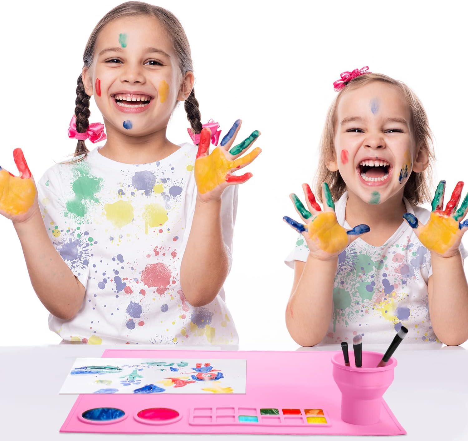 - All-In-One Painting Kit:Our Silicone Painting Mat is the ultimate painting companion for kids! It comes with a built-in paint palette, scale design, brush holder, cleaning sponge and a cleaning r cup for easy painting and clean-up